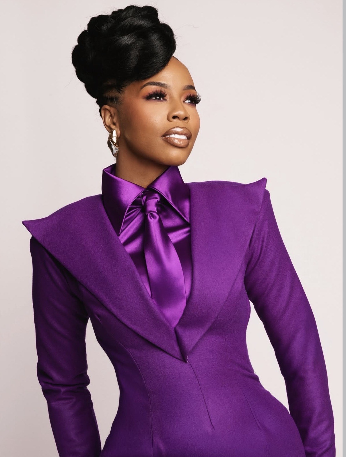 Brandee Evans, on the other hand, embraced architectural beauty with a sculptural updo that transformed natural hair into statement art. Her dark strands were gathered upward into a voluminous bun placed high at the crown, forming intricate twists and coiled patterns that felt both deliberate and striking. The result balanced structure with movement, creating a silhouette that felt refined, expressive, and unmistakably intentional.