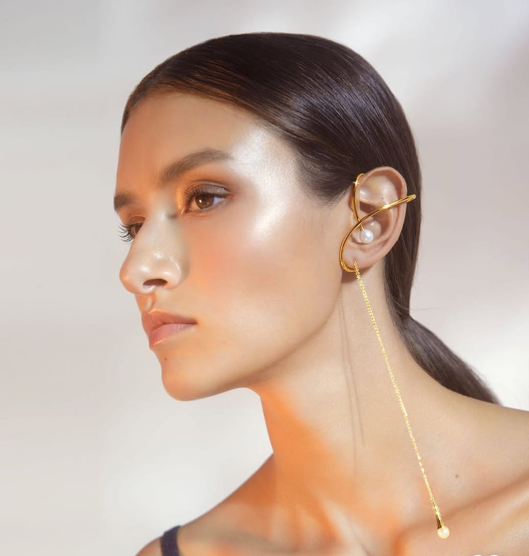 In 2025, ear cuff earrings go far beyond simple metal bands. Designers are playing with bold shapes and rich textures—think molten metals that double as wearable sculptures, cuffs trailing delicate pearls, and pieces adorned with tiny charms that dance as you move. From sustainable recycled metals to eye-catching acrylics, luxe golds, and dazzling pavé, the material possibilities are endless.
